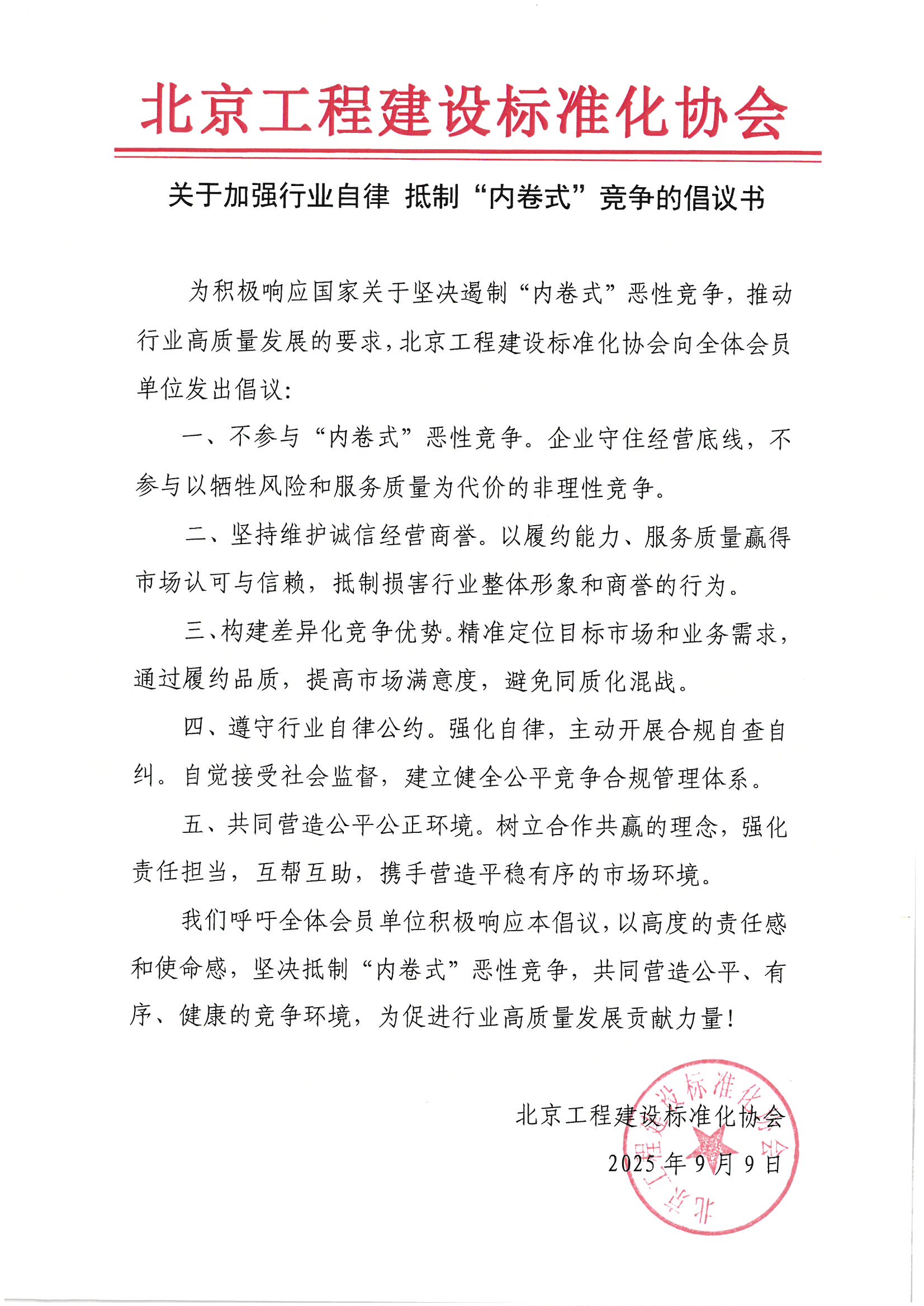 关于加强行业自律 抵制“内卷式”竞争的倡议书